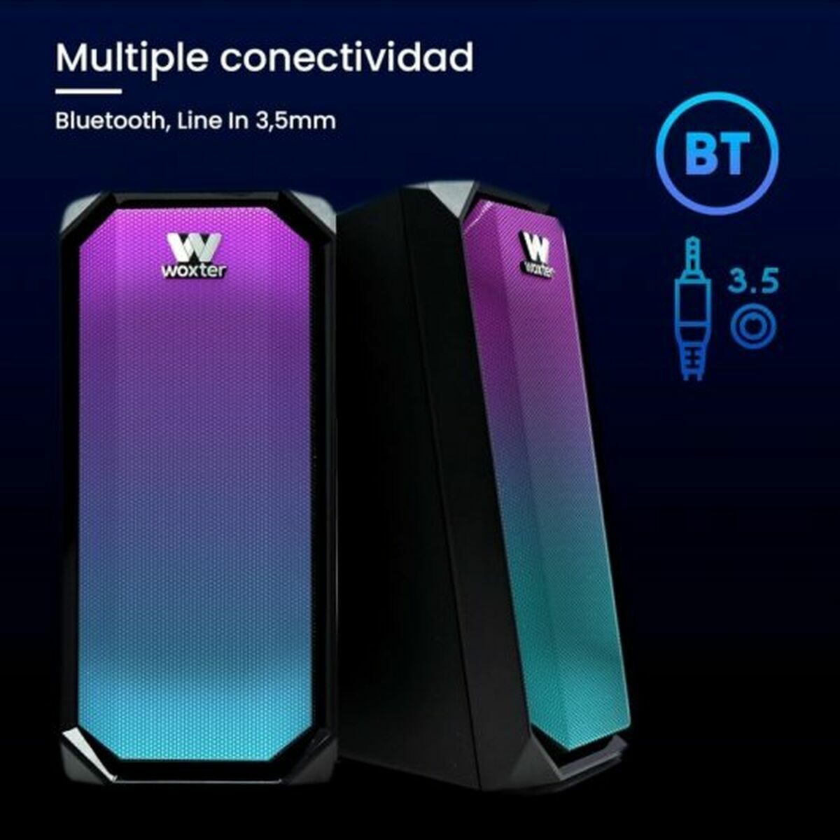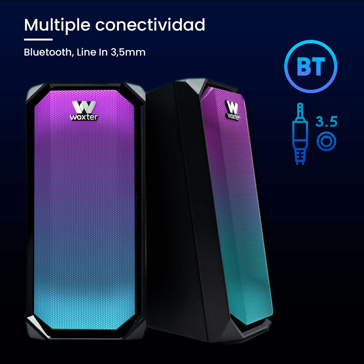 Den 2.0 BIG BASS 97 bærbare Bluetooth-højttaler fra Woxter er en alsidig og kompakt løsning til dem, der ønsker en forbedret lydoplevelse overalt. Udstyret med Bluetooth-forbindelse muliggør den nem og stabil trådløs tilslutning til kompatible enheder, hvilket gør musikafspilning uden ledninger enkel og bekvem. Den har et stereolydsystem bestående af to 2.0-højttalere, der leverer en estimeret RMS-effekt på 20 W, nok til at opnå passende lydstyrke og markant basforstærkning, ideelt til at nyde forskellige musikgenrer med god lydkvalitet. Dens kabinet i robust plastik sikrer holdbarhed og let vægt, hvilket gør højttaleren let at transportere til udendørs brug, rejser eller hjemme. Derudover har den en 3,5 mm jack-indgang, som øger kompatibiliteten med enheder uden Bluetooth og øger alsidigheden. Produktet leveres med brugerflade og dokumentation på spansk, hvilket gør betjening og opsætning enkel. Med sine tekniske egenskaber og funktionelle design er 2.0 BIG BASS 97 et afbalanceret valg for brugere, der søger en bærbar højttaler med god lydydelse og moderne tilslutning, velegnet til både daglig brug og for dem, der ønsker større mobilitet uden at gå på kompromis med kvalitetsstereo.