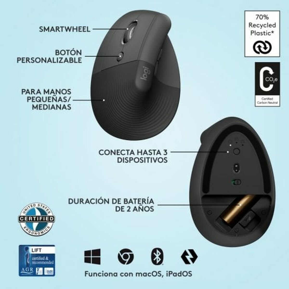 Hvis du er vild med IT og elektronik og kan lide at være opdateret med teknologi uden at gå glip af noget, så køb Ergonomisk optisk mus Logitech Lift Grå Stål 4000 dpi til en uovertruffen pris.