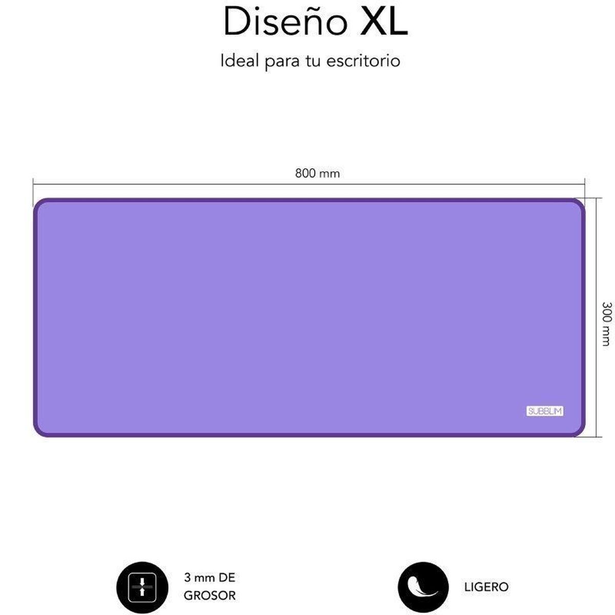 Den Subblim SUBMP-03HP002 musemåtte er den ideelle løsning for dem, der ønsker at optimere deres plads og forbedre den daglige arbejdsoplevelse ved skrivebordet, både på kontoret og derhjemme. Denne model fås i en karakteristisk monokrom lilla farve, som tilfører personlighed og stil til ethvert arbejdsmiljø, og den udmærker sig ved sit XL-format på 80 x 30 cm, der er stort nok til komfortabelt at rumme tastatur, mus og andre tilbehør. Dens tekstiloverflade lavet af slidstærkt polyester sikrer en glat og yderst præcis musebevægelse, hvilket giver en stille og flydende bevægelse selv under lange arbejds- eller spilsessioner. Den flerlags struktur kombinerer neopren, polyester og en skridsikker gummibase (indeholder latex), som sikrer maksimal stabilitet på enhver type bord og forhindrer uventede bevægelser, selv ved intensiv brug. Med en tykkelse på 2 mm har den en slank og fleksibel profil, der er nem at rulle sammen og transportere uden at miste sin oprindelige form. Denne musemåtte er designet med holdbarhed for øje: den har forstærkede kanter med slidstærk syning, som forlænger levetiden og forhindrer flossede kanter eller deformation over tid. Den er også kendetegnet ved sin vaskbare egenskab og modstandsdygtighed over for vand og stænk, hvilket gør rengøringen enkel med en fugtig klud og hjælper med at holde arbejdsområdet i optimal stand. Det er en let musemåtte på 440 gram med et rektangulært design, nem at håndtere og perfekt til alle typer brugere. Produktet er af høj kvalitet og rettet mod dem, der søger et pålideligt, komfortabelt og visuelt tiltalende tilbehør, som bringer orden og beskyttelse til deres arbejds- eller studiezonen. Kort sagt tilbyder Subblim SUBMP-03HP002 en afbalanceret kombination af funktionalitet, holdbarhed og design, der opfylder forventningerne hos de mest krævende brugere, der værdsætter både ydeevne og æstetik i deres skrivebordstilbehør.
