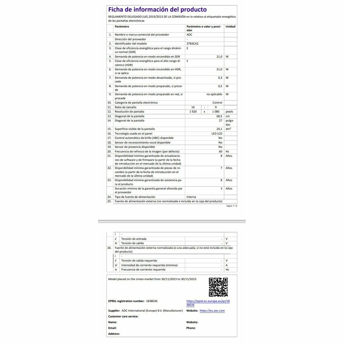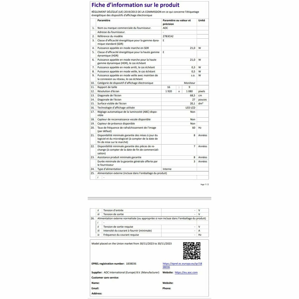 Hvis du søger de mest trendy nyheder på markedet, præsenterer vi dig for Gaming skærm AOC 27B3CA2 27″ Full HD!