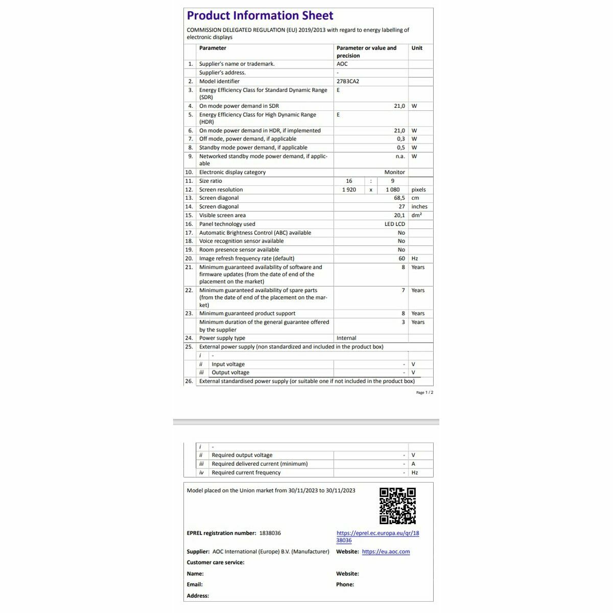 Gaming skærm AOC 27B3CA2 27″ Full HD