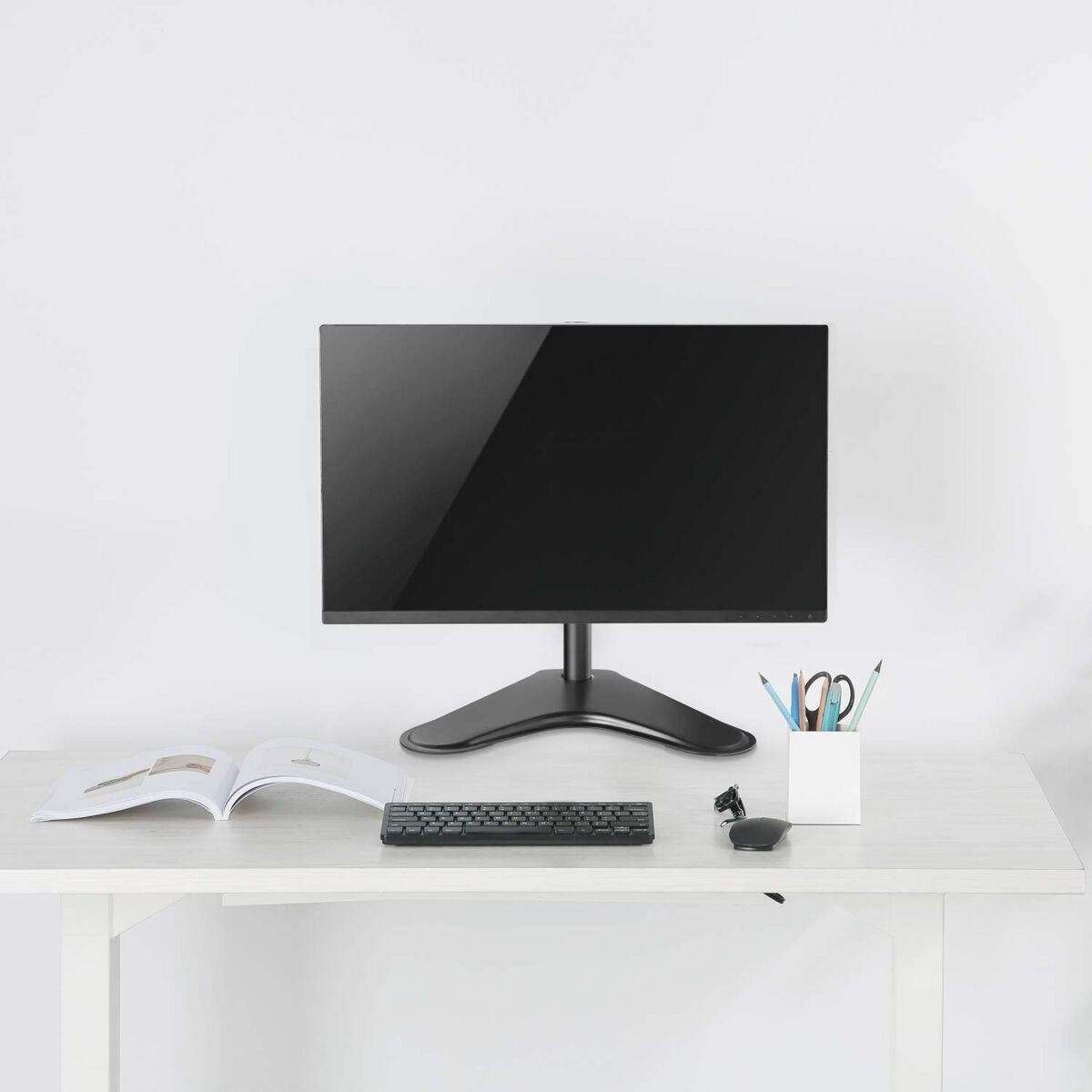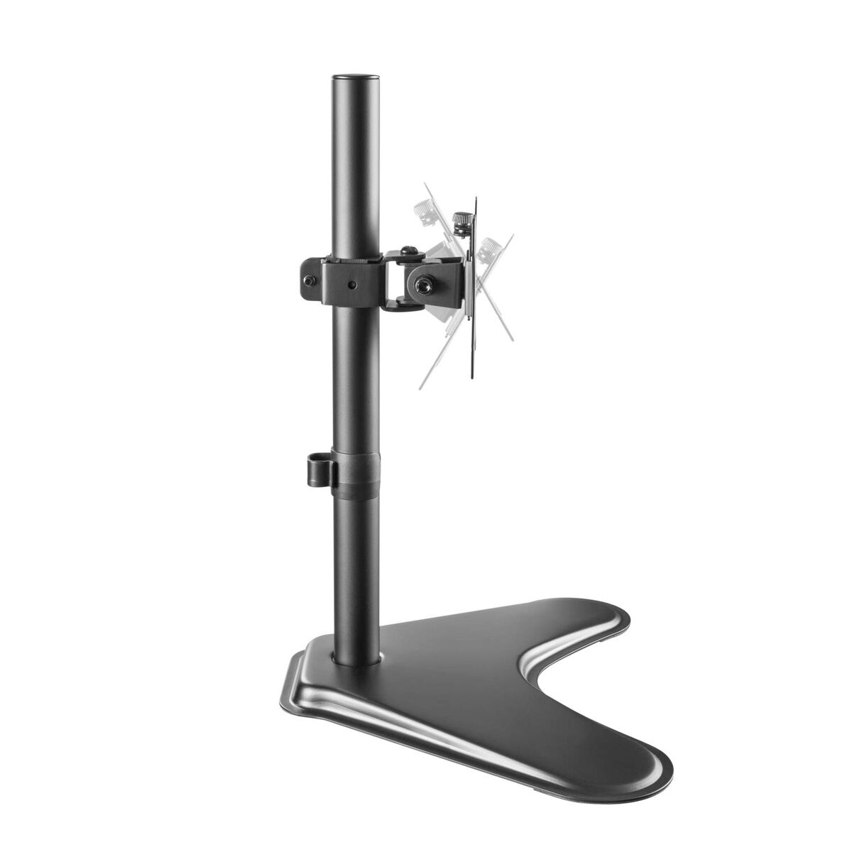 Ewent EW1535. Montering: Fritstående, Maksimal vægtkapacitet: 8 kg, Minimal skærmstørrelse kompatibilitet: 33 cm (13″), Maksimal skærmstørrelse kompatibilitet: 81,3 cm (32″), Montering interface kompatibilitet (min.): 75 x 75 mm, Montering interface kompatibilitet (maks.): 100 x 100 mm. Højdejustering, Drejevinkel område: -90 – 90°, Hældningsvinkelområde: -45 – 45°. Farve på produkt: Sort