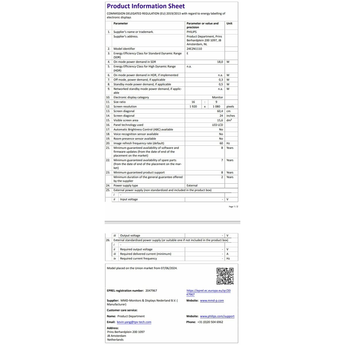 Philips 27E1N1200A/00 gamingmonitor på 27 tommer er designet til at levere en afbalanceret og behagelig visuel oplevelse for både gamere og professionelle. Den har en IPS LCD-skærm med brede betragtningsvinkler på 178º horisontalt og vertikalt, en Full HD-opløsning på 1920 x 1080 pixels og en opdateringshastighed på op til 120 Hz, som sikrer flydende billeder ved hurtige bevægelser. Baggrundsbelysningen med White LED kombineret med en lysstyrke på 300 cd/m² og en typisk kontrast på 1500:1 giver levende farver og god skarphed, med understøttelse af brede farverum som Adobe RGB, DCI-P3, sRGB og NTSC for mere realistiske resultater. Modellen har også hurtige svartider (4 ms grå-til-grå og 1 ms MPRT) samt funktioner til anti-flimmer og reduktion af blåt lys, der beskytter øjnene ved lange sessioner. Den matte, antirefleksbehandlede overflade minimerer genskin og fingeraftryk for en behagelig visning i forskellige miljøer. Monitoren tilbyder alsidig tilslutning med porte til VGA, HDMI 1.4 og DisplayPort 1.2, kompatibel med HDCP 1.4-beskyttet indhold, samt integrerede lydindgange og -udgange. Det funktionelle design inkluderer et justerbart stativ med vippevinkel (-5° til 20°), VESA 100 x 100 mm monteringsmulighed og Kensington-lås for sikkerhed. Med et lavt strømforbrug på 20,2 W i drift og 0,3 W i standby er den energieffektiv. De kompakte mål (617 x 457 x 211 mm) og lave vægt (3,97 kg) gør den nem at integrere i arbejds- eller gamingmiljøer. Den opfylder internationale standarder for bæredygtighed og sikkerhed som RoHS, CE, TUV og FCC. Strøm- og HDMI-kabler medfølger for hurtig installation. Denne monitor kombinerer tekniske egenskaber og ergonomi for brugere, der søger en pålidelig, effektiv skærm til daglig intensiv brug i gaming eller kontormiljøer.