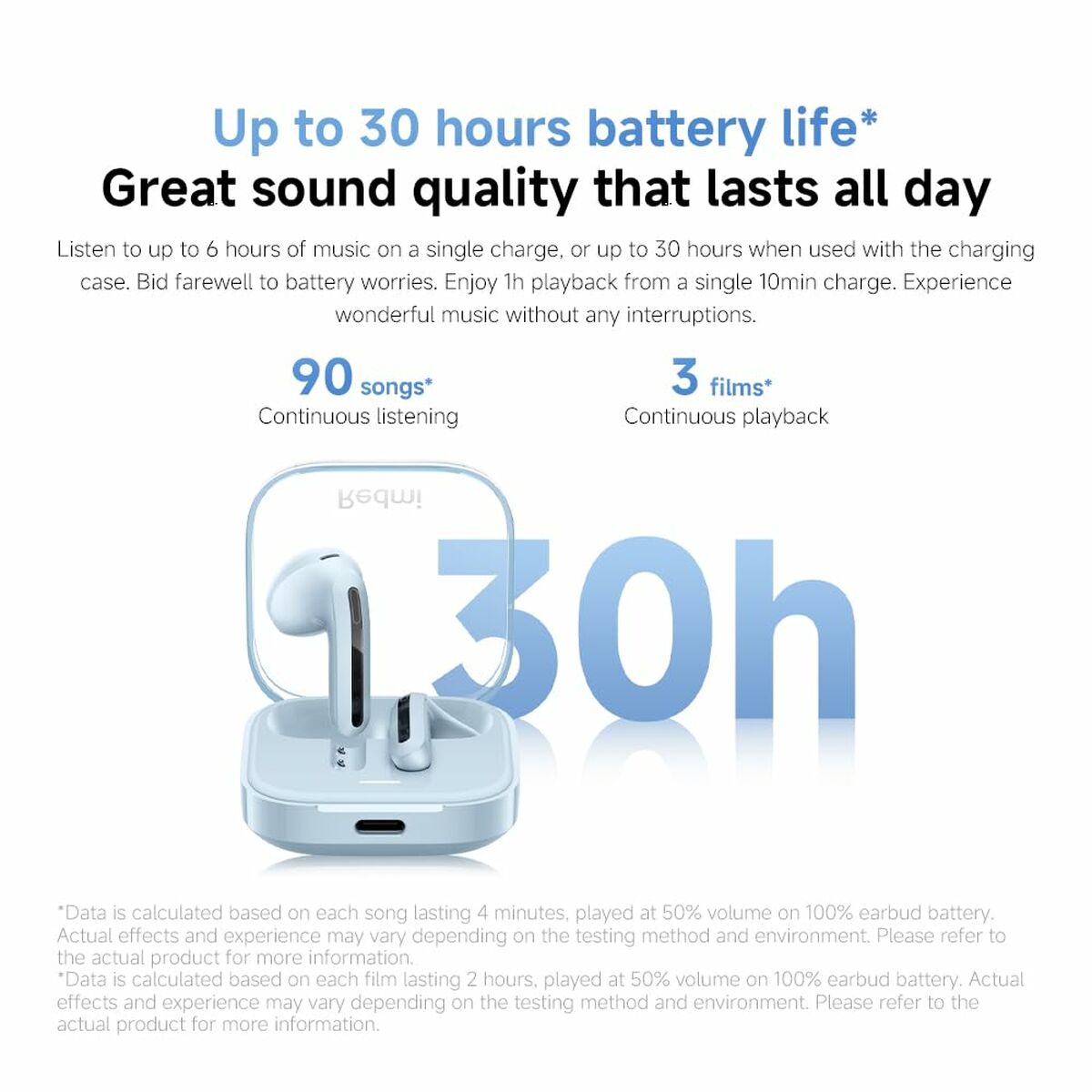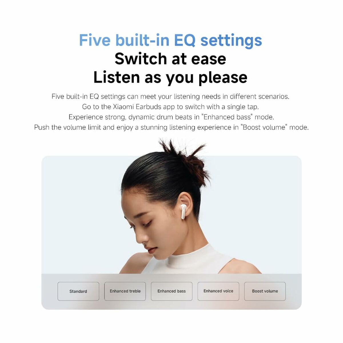 Redmi Buds 6 Active fra Xiaomi er trådløse in-ear Bluetooth-øretelefoner, der tilbyder en avanceret og behagelig lydoplevelse til daglig brug både indendørs og udendørs. Udstyret med en 14,2 mm dynamisk driver finjusteret af Xiaomi Acoustic Lab leverer de kraftfuld og detaljeret lyd, især i de lave frekvenser, hvilket forbedrer basgengivelsen for en mere omsluttende oplevelse. Deres dobbelte mikrofonstøjdæmpningssystem med vindstøjscancelering op til 4 m/s sikrer klare og tydelige opkald ved effektivt at filtrere baggrundsstøj for interferensfri kommunikation. Det ergonomiske semi-in-ear design sikrer en fast og behagelig pasform, der mindsker træthed i ørerne ved at balancere vægten både inde og udenfor øret for bedre stabilitet ved længere tids brug. Bluetooth-forbindelsen muliggør hurtig og stabil parring, hvilket giver trådløs bevægelsesfrihed. Batteritiden er op til 6 timers kontinuerlig afspilning på en enkelt opladning, som kan forlænges til 30 timer i alt med det bærbare opladningsetui; derudover understøtter de hurtig opladning, der giver op til 1 times brug efter kun 10 minutters opladning. Redmi Buds 6 Active har fem tilpasselige equalizertilstande via Xiaomi Earbuds-appen, der tilpasser lyden til forskellige musikgenrer ved at forbedre bas, diskant eller øge lydstyrken efter brugerens præferencer. Deres elegante og kompakte sorte design med buede former og moderne detaljer gør dem til et funktionelt og stilfuldt tilbehør, nemt at have med og bruge i alle miljøer. Samlet set kombinerer disse in-ear høretelefoner avancerede tekniske funktioner med et design, der prioriterer komfort og lydkvalitet, og de fremstår som et alsidigt valg i segmentet for trådløse Bluetooth-øretelefoner.