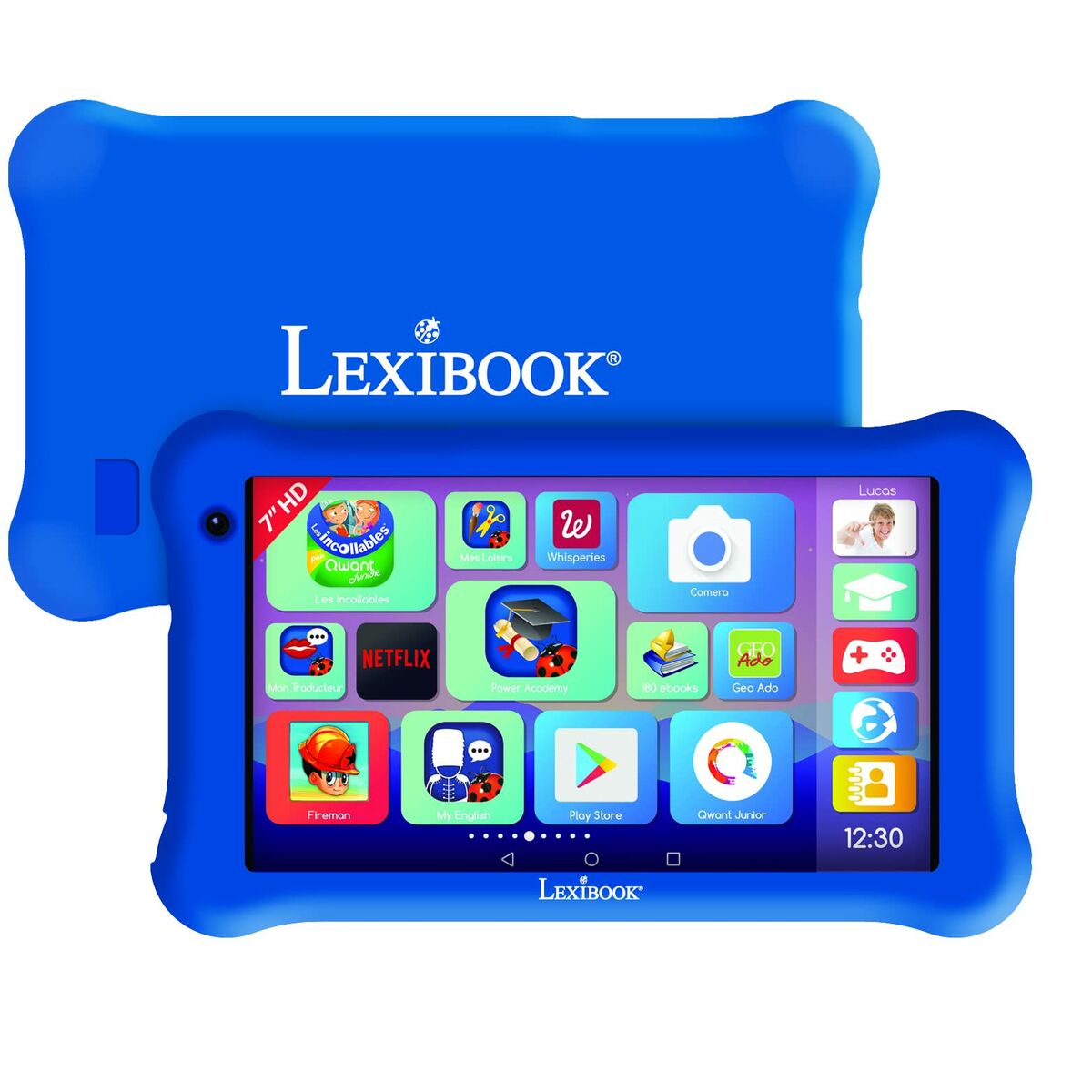 LexiTab Master 7 TL70FR fra Lexibook er en interaktiv børnetablet designet specielt til børn fra 3 år, som kombinerer underholdning og læring i et sikkert og tilpasset miljø. Den har en 7-tommers HD-skærm, der giver et klart og skarpt billede, ideelt til adgang til et bredt udvalg af uddannelsesindhold og spil via Google Play, hvilket sikrer ubegrænset adgang til Android-apps. Den er udstyret med en quad-core processor, der sikrer en hurtig og flydende ydeevne, samt 1 GB RAM for stabil drift. Med en intern lagerkapacitet på 16 GB kan man gemme mange apps og filer, mens Bluetooth-forbindelse gør det muligt at tilslutte andre enheder og udvide brugsmulighederne. Modellen fås i to farver, blå og hvid, og er lavet af robust plastik, som sikrer holdbarhed og har et beskyttende cover, der hjælper med at beskytte tabletten mod stød og fald, som ofte sker ved børns brug. Den er konfigureret på fransk og tilpasset børn, der udvikler sig på dette sprog, og tilbyder tilpassede profiler til at kontrollere og begrænse adgang til upassende indhold takket være omfattende forældrekontrol. Samlet set kombinerer LexiTab Master 7 TL70FR tekniske funktioner, der passer til børn, med et sikkert og lærerigt miljø, som fremmer leg og læring i barnets tidlige udviklingsfaser.