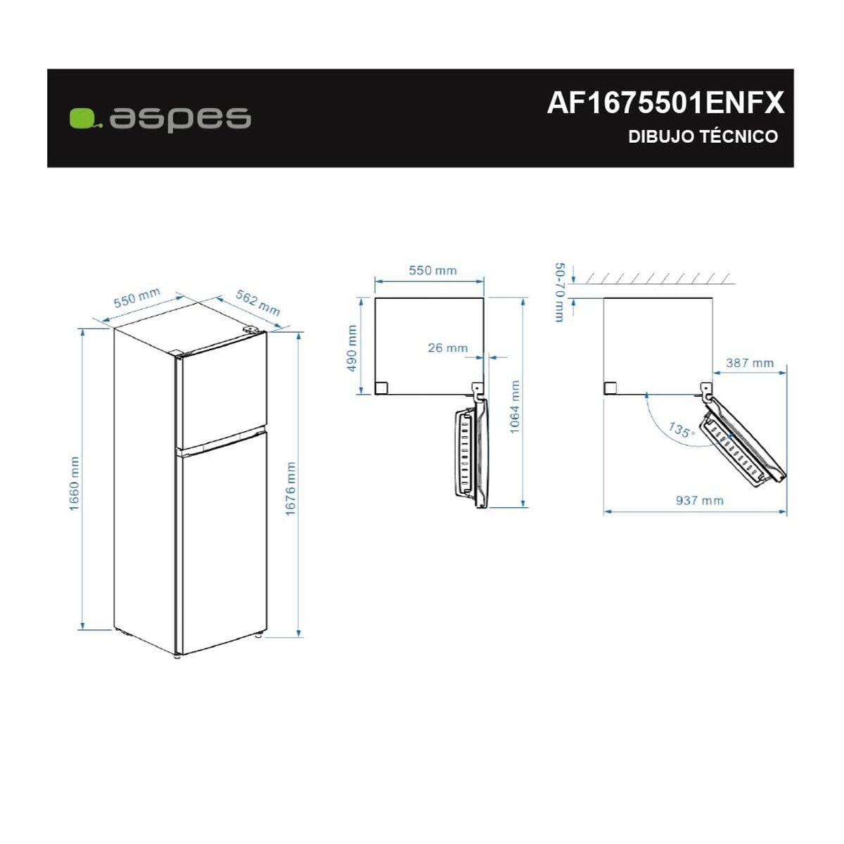 Hvis du overvejer at renovere dit køkken, så køb Kombineret køleskab Aspes AF1675501ENFX og andre produkter Aspes! Den bedste kvalitet til den bedste pris er inden for din rækkevidde!