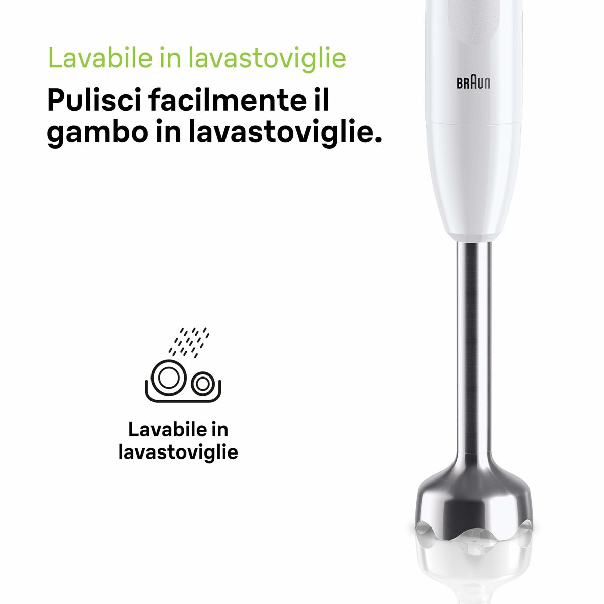 Den stavblender fra Braun er et husholdningsapparat designet til effektiv og bekvem tilberedning af blandinger og smoothies. Den har et elegant design i hvid farve, som let passer ind i ethvert køkken. Dens kande har en kapacitet på 600 ml, ideel til at lave individuelle portioner eller små mængder uden spild af ingredienser. Den har en effekt på 450 W, der giver tilstrækkelig kraft til at knuse og blande forskellige ingredienser, fra frugt og grøntsager til blød is, hvilket sikrer ensartede resultater ved hver brug. Dens konstruktion indeholder rustfrit stål-komponenter, som sikrer længere holdbarhed og modstandsdygtighed over for almindelig slid, samt gør rengøringen nemmere efter brug. Den elektriske strømforsyning sker via en strømkabel på 1,2 meter, hvilket er tilstrækkeligt til en bekvem tilslutning tæt på arbejdsområdet uden begrænsninger. Denne blender er et praktisk og funktionelt redskab for dem, der søger et pålideligt produkt med grundlæggende funktioner til daglig blandning i køkkenet, der kombinerer kvalitet og effektivitet i et kompakt og let håndterbart format.