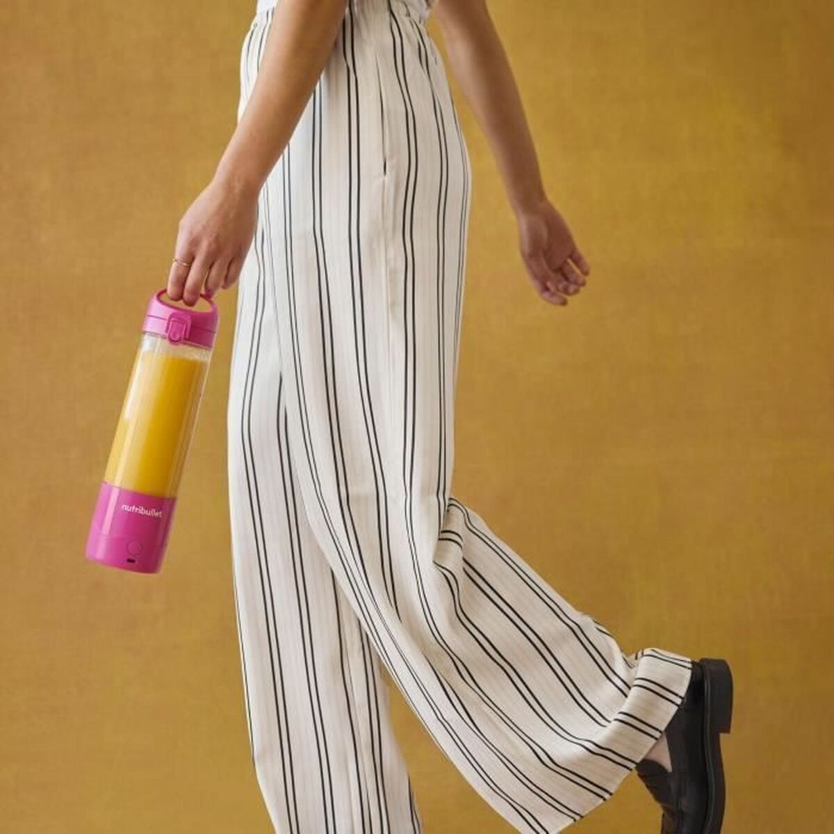 Nutribullet NBP003MA blenderen er et husholdningsapparat designet til at tilbyde praktisk og effektiv tilberedning af smoothies og naturlige juicer. Med en effekt på 70W kan denne bærbare blender nemt knuse frugt, grøntsager og andre ingredienser, hvilket sikrer en homogen blanding og optimal konsistens. Dens kapacitet på 475 ml er ideel til individuelle portioner, perfekt til dem, der har brug for en hurtig og bekvem løsning til sunde drikke. Den har et kompakt og let design i en attraktiv rosa farve (også kaldet rose), som gør den visuelt særpræget og velegnet til moderne køkkener eller til at tage med på farten. Den inkluderer en genanvendelig flaske, der gør det nemt at transportere og drikke direkte efter brug, hvilket øger funktionaliteten og alsidigheden. Dens bærbare format og muligheden for at bruge den uden fast base gør den praktisk for aktive brugere, der ønsker at lave smoothies eller juice uden besvær og med begrænset plads. Kombinationen af størrelse, effekt og design gør denne blender fra Nutribullet til et funktionelt og tilgængeligt apparat for dem, der prioriterer sundhed og tid i deres daglige rutine. Denne model leverer en enkel og effektiv oplevelse, der hjælper med at integrere sundere spisevaner på en bekvem og fleksibel måde.
