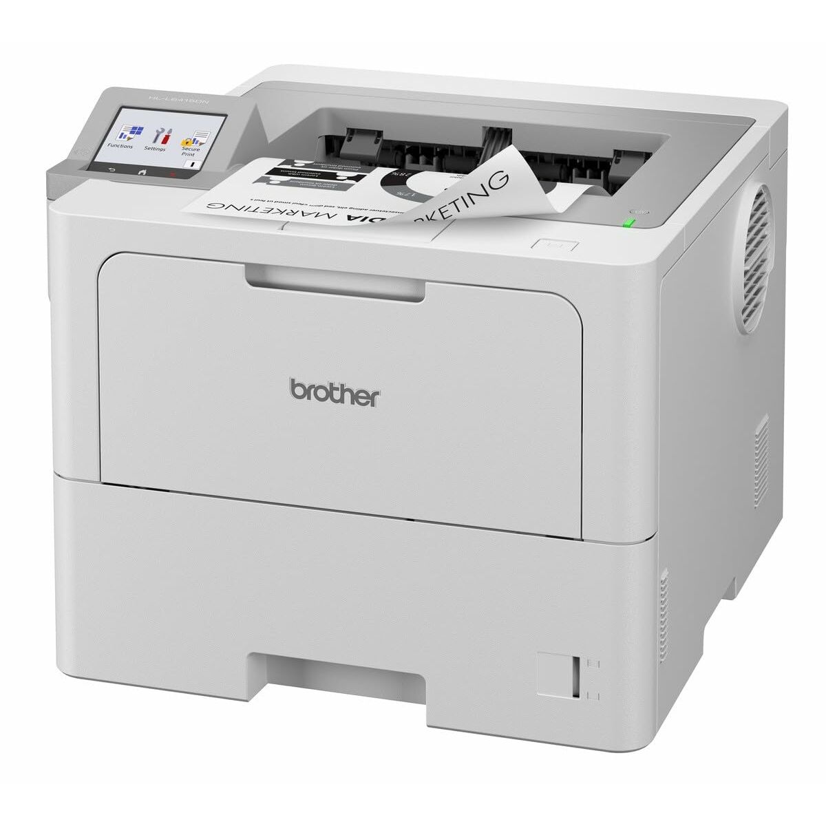 Brother HL-L6410DN laserprinteren er en professionel enhed designet til kontormiljøer, der kræver høj produktivitet og avanceret tilslutning. Denne sort-hvide printer udmærker sig ved sin udskrivningshastighed på op til 50 sider pr. minut (ppm), hvilket gør det muligt at håndtere store arbejdsvolumener effektivt. Dens design i sort og hvid giver et sobert finish, der passer til moderne erhvervsrum. Den har automatisk duplexfunktion, som gør dobbeltsidet udskrivning nem, optimerer papirforbruget og reducerer driftsomkostninger. Med hensyn til tilslutning har den alsidige muligheder som Wi-Fi og NFC, hvilket forenkler trådløs forbindelse fra flere enheder, herunder kompatible computere og mobiltelefoner, og muliggør hurtig direkte udskrivning uden kabler. Derudover har den en USB-port til direkte udskrivning fra eksterne lagermedier. Dens indbyggede 3,5-tommer farveskærm gør opsætning og kontrol af udskriftsopgaver enkel med en klar og brugervenlig grænseflade. Den integrerede netværksfunktion gør den ideel til samarbejdsmiljøer, hvor flere brugere kan få adgang samtidigt. Brother HL-L6410DN tilbyder en afbalanceret kombination af hastighed, kvalitet og teknologisk fleksibilitet, designet til at optimere arbejdsgange i virksomheder, der kræver pålidelighed og avancerede funktioner i sort-hvid udskrivning. Kort sagt er det et robust og effektivt valg for kontorer, der ønsker at maksimere produktiviteten med en højtydende laserprinter og tilslutning efter nutidens standarder.