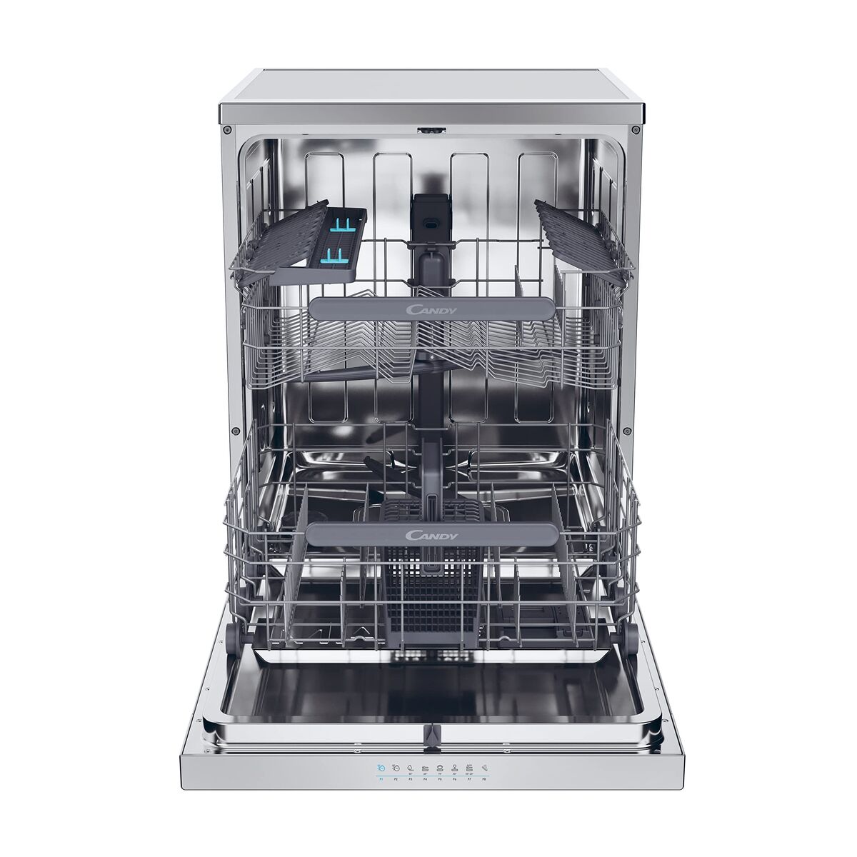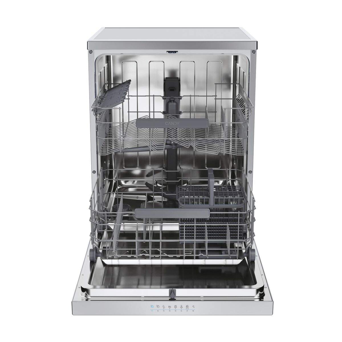 Opvaskemaskinen Candy CF4E4F0X tilbyder en effektiv og avanceret løsning til hjemmets rengøring og udmærker sig med sit moderne design i rustfrit stål, som let passer ind i nutidige køkkener. Med en bredde på 60 cm giver denne model optimal kapacitet og kan håndtere op til 14 kuverter pr. cyklus, hvilket gør den ideel til store familier eller dem, der ofte har meget service. Dens energiklasse E sikrer et elforbrug, der lever op til gældende standarder, og kombinerer rengøringseffektivitet med energibesparelse. Den indbyggede skærm gør det nemt at indstille og følge hvert program, hvilket giver en intuitiv og overskuelig navigation blandt mulighederne. En særlig funktion ved denne opvaskemaskine er Wi-Fi-forbindelsen, som muliggør fjernstyring via en mobilapp, så du kan starte, pause eller programmere cyklusser på afstand og modtage notifikationer om maskinens status. Stålfinishen giver øget holdbarhed og et elegant udseende, hvilket sikrer både modstandsdygtighed og nem udvendig rengøring. Kombinationen af teknologiske funktioner og høj ydeevne gør denne model til et praktisk og moderne valg for dem, der ønsker automatisering og fuld kontrol over den daglige opvask. Candy bekræfter sit engagement i innovation og funktionalitet og placerer CF4E4F0X som et solidt og pålideligt valg blandt tilsluttede opvaskemaskiner.