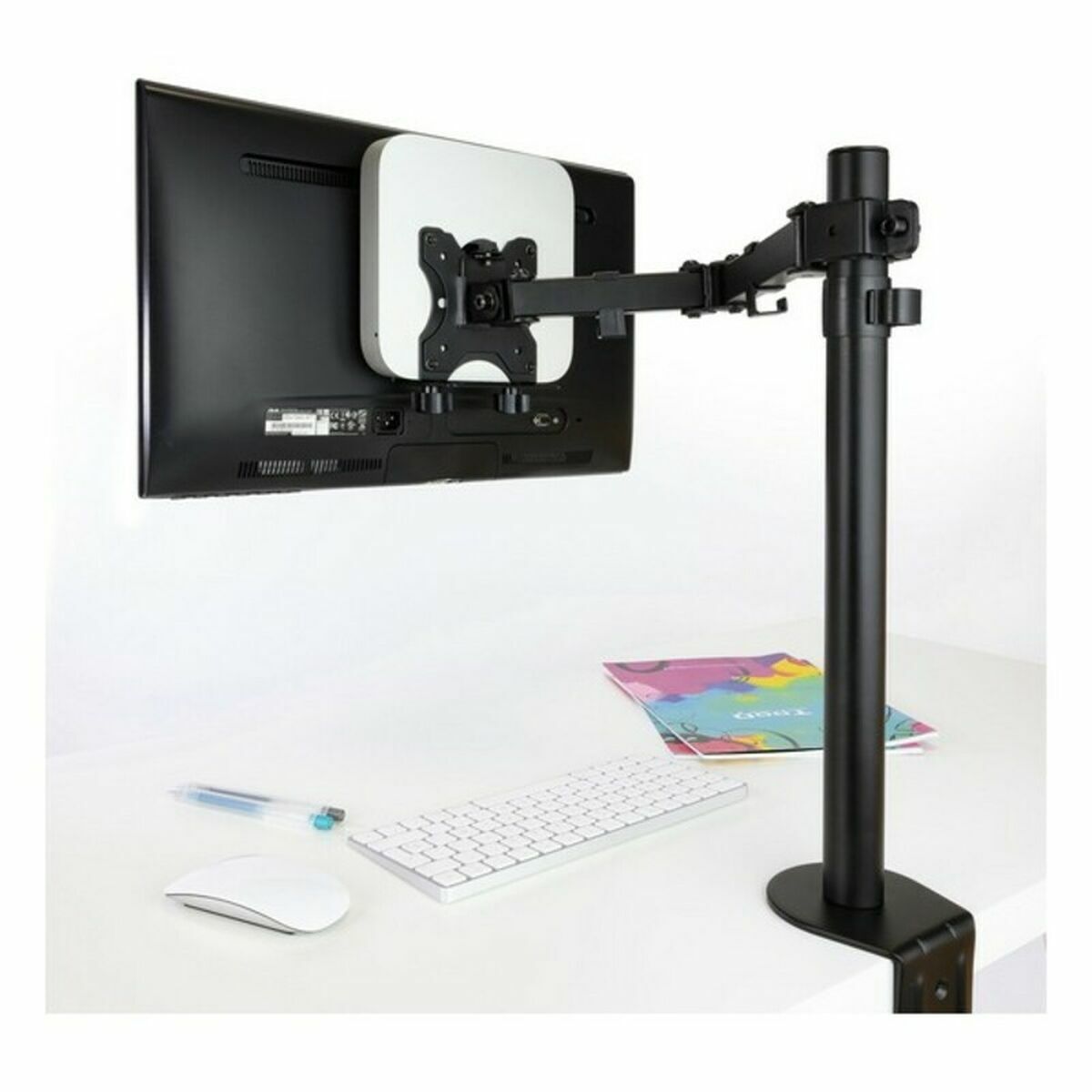 TooQ TCCH0001-B PC-holderen er et tilbehør designet til at optimere og beskytte arbejdsområder ved at muliggøre korrekt placering af mini-PC’er. Fremstillet i højstyrket metal med en sort finish, tilbyder denne holder en robust konstruktion, der kan bære op til 5 kg maksimal vægt og passer til de fleste kompakte mini-computere på markedet. Dens omtrentlige mål er 12,9 x 11,8 x 8,5 cm, hvilket giver en kompakt størrelse, der gør monteringen nem uden at optage unødvendig plads – ideel til både professionelle og private miljøer, hvor orden er vigtigt. Den er kompatibel med forskellige monteringsinterfaces, fra 50 x 50 mm til 100 x 100 mm, og tilpasser sig forskellige VESA-standarder, hvilket letter installation på bagsiden af skærme eller monteringsarme. Holderen er designet til at bære én enkelt skærm eller mini-PC uden højdejustering, hvilket sikrer en stabil og sikker position for enheden. Dens design muliggør fastgørelse både til en standerarm eller direkte på skrivebordet, hvilket øger anvendelsesmulighederne efter brugerens behov. De præcise mål er 129 mm i højden, 118 mm i bredden og 85 mm i dybden, hvilket giver en klar reference til integration i eksisterende arbejdsstationer. Den leveres med en brugervejledning for nem installation og korrekt brug. Samlet set er TooQ TCCH0001-B en praktisk og holdbar løsning til at organisere mini-PC’er, forbedre ergonomi og udnytte plads optimalt i kontor- eller fritidsmiljøer.