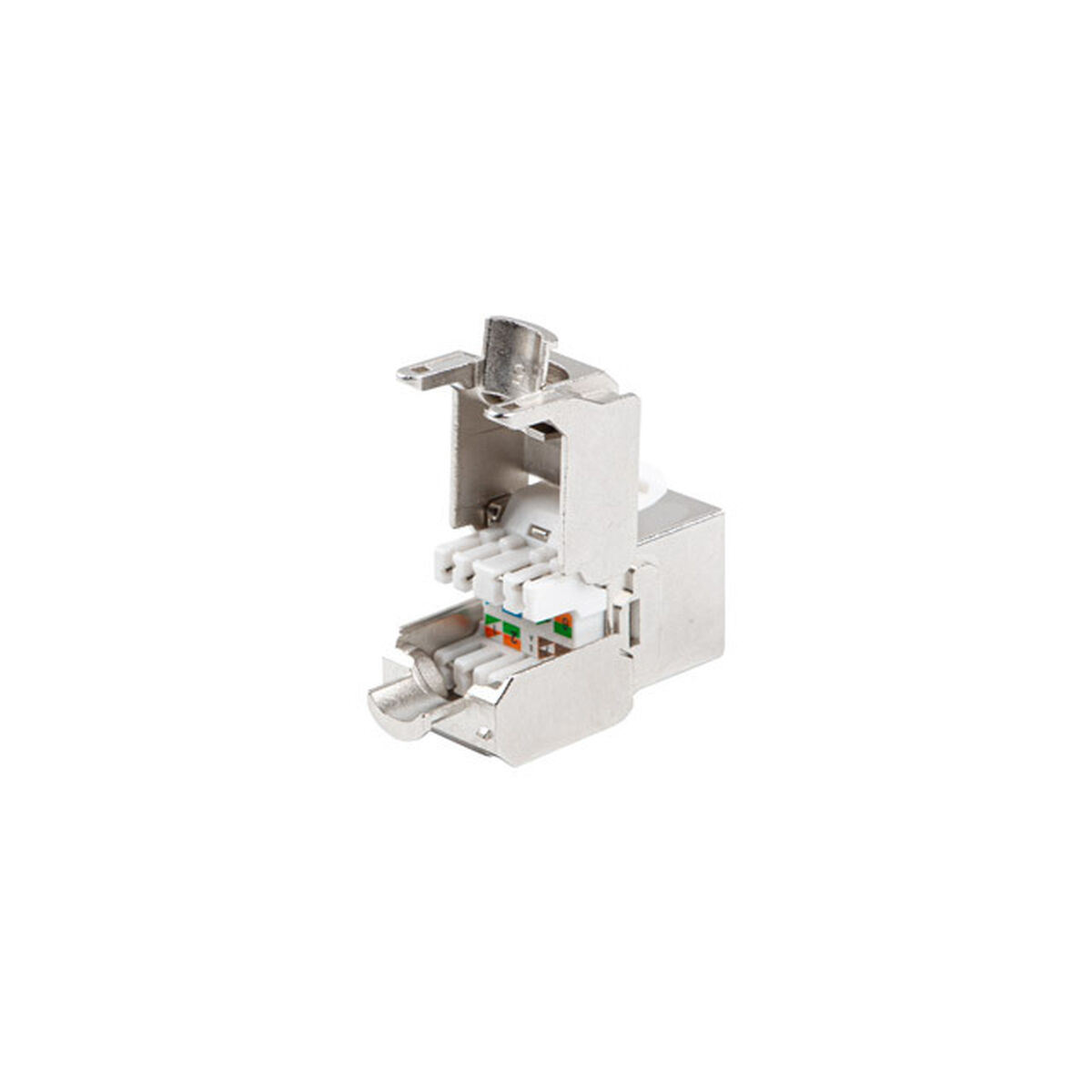 RJ45-stik KSF7-2000 fra Lanberg er en specialiseret komponent designet til struktureret kabelføring, som kræver en pålidelig og højtydende forbindelse. Dets flade konstruktionstype gør det nemt at integrere i trange rum eller installationer, hvor kabelføringen skal være mere præcis og ordnet. Fremstillet i rustfrit stål tilbyder det overlegen modstandsdygtighed mod korrosion og slid, hvilket sikrer holdbarhed og lang levetid selv i krævende miljøer. Dette stik har to hun-interfaces, én RJ-45 og én LSA, begge designet til at opretholde en stabil og sikker forbindelse, kompatibel med kabler i kaliber 22 til 26 AWG. Det er specifikt udviklet til CAT7-standarden og understøtter skærmet kabelføring F/UTP (FTP), hvilket sikrer fremragende beskyttelse mod elektromagnetiske forstyrrelser og forbedrer kvaliteten af højhastighedsdatatransmission. Derudover opfylder det tekniske certificeringer EN 50173-1:2011, EN 60603-7-4 og ANSI/TIA 568-C.2, hvilket sikrer kompatibilitet med internationale standarder og egnethed til professionelle og virksomheders netværksinfrastrukturer. Dets plane design og brug af kvalitetsmaterialer gør KSF7-2000 til en effektiv løsning for installatører, der har brug for kompakte, robuste RJ45-forbindelser med certificeret ydeevne i avancerede netværk. Samlet set er dette Lanberg-stik en pålidelig og godkendt komponent, der bidrager til at opretholde integriteten og optimal ydelse i moderne netværksinstallationer.
