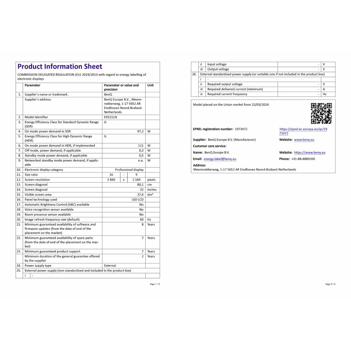 Skærm BenQ EX321UX 31,5″ 4K Ultra HD