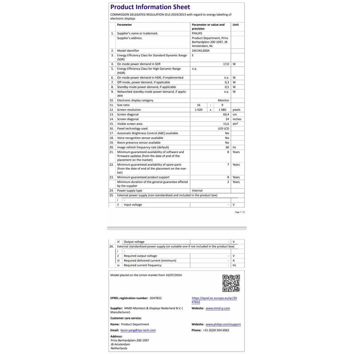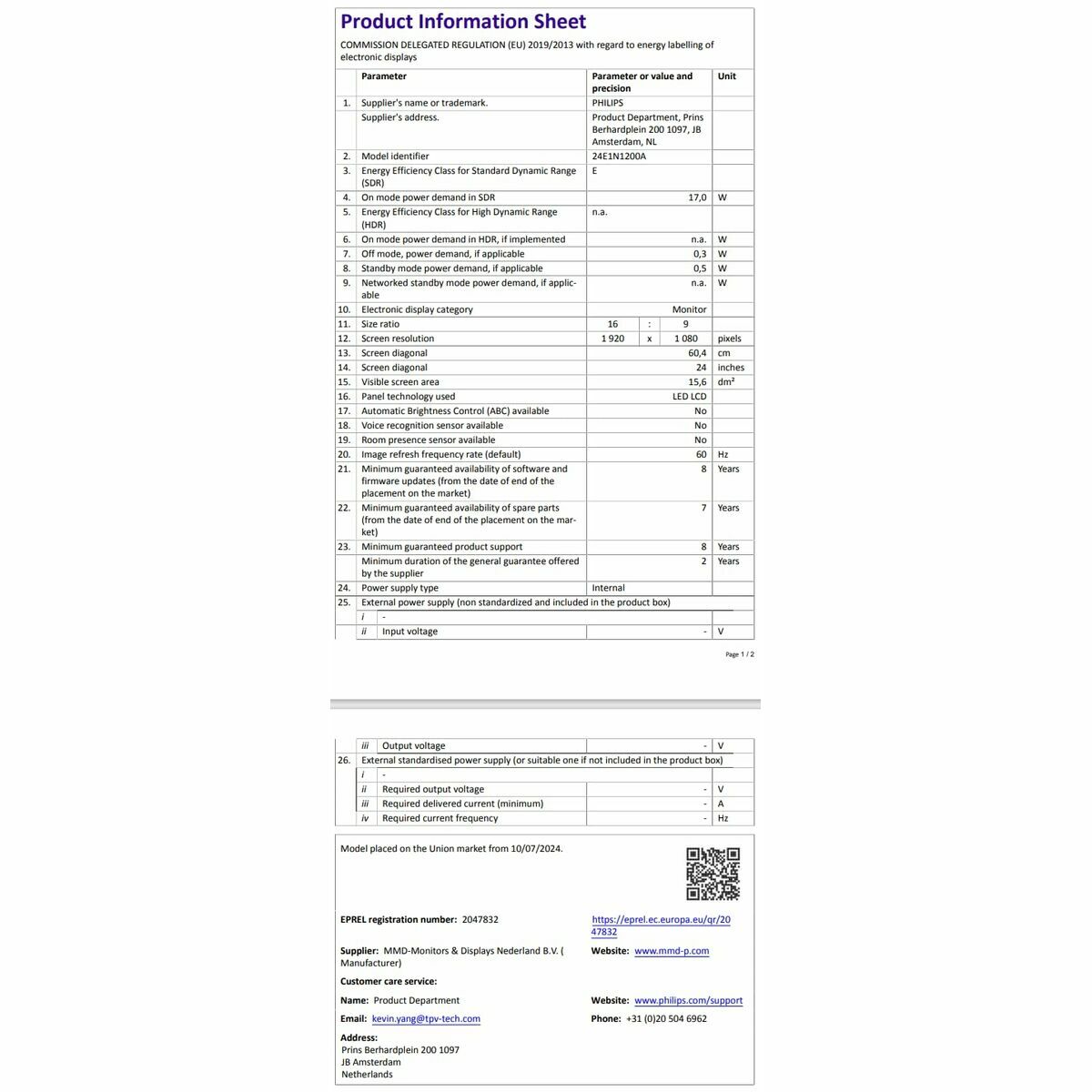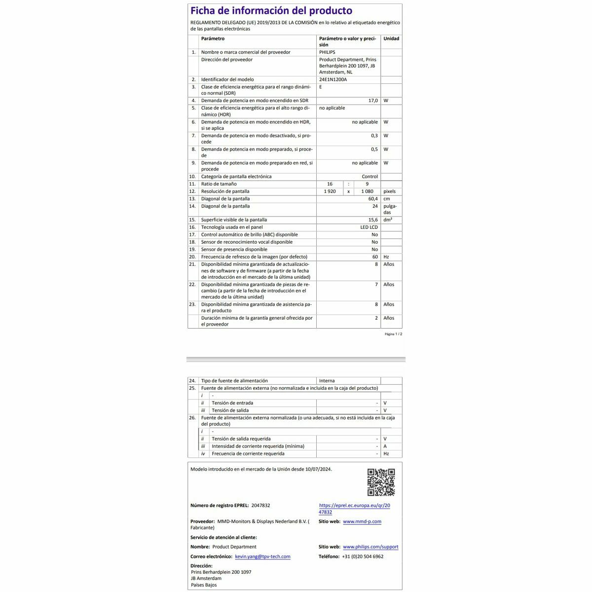 Skærm Philips 24E1N1200A/00 23,8″ Full HD