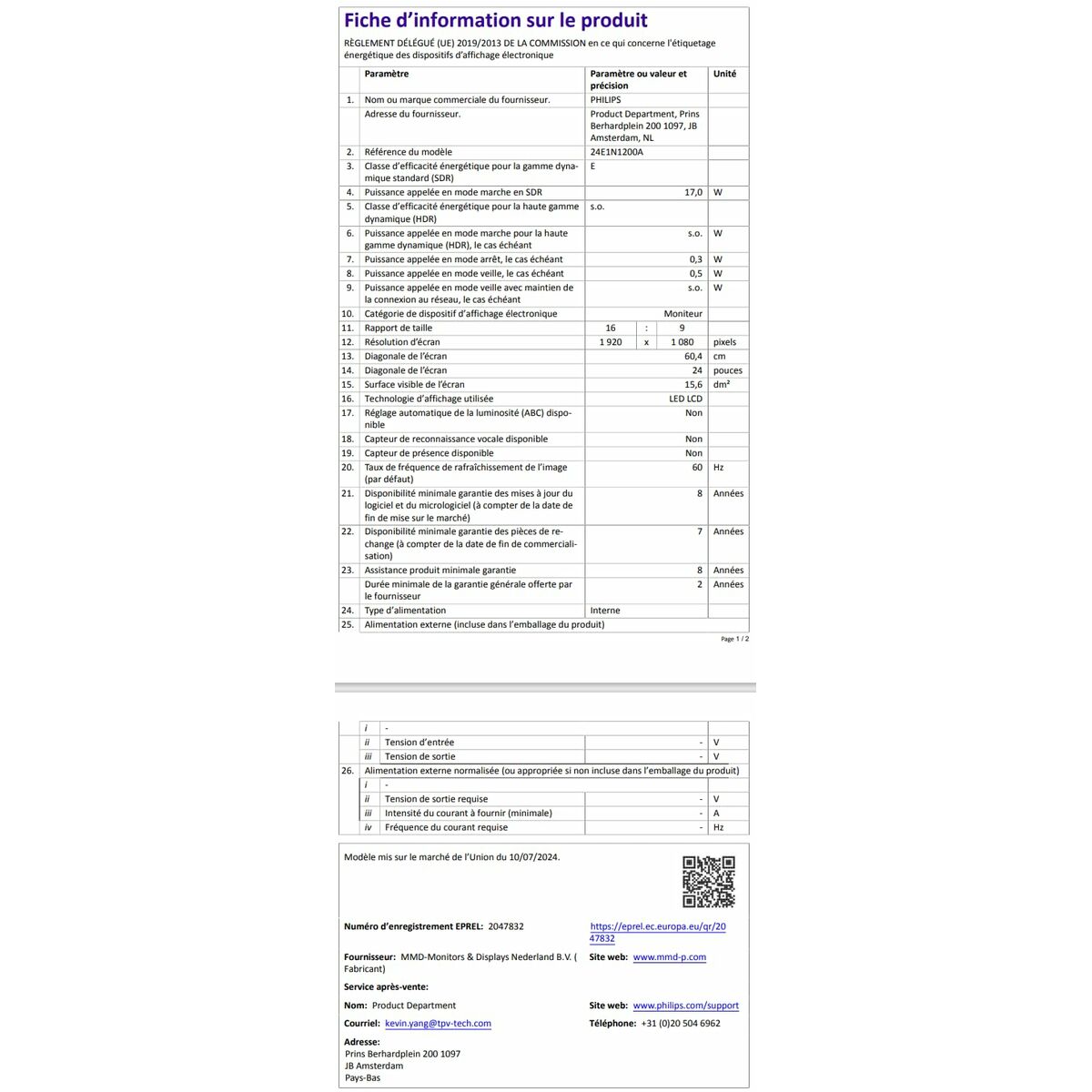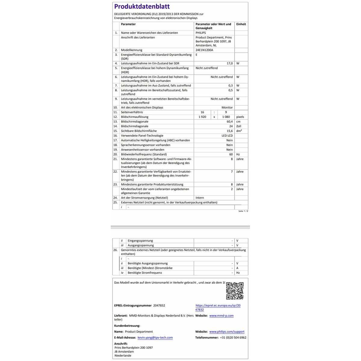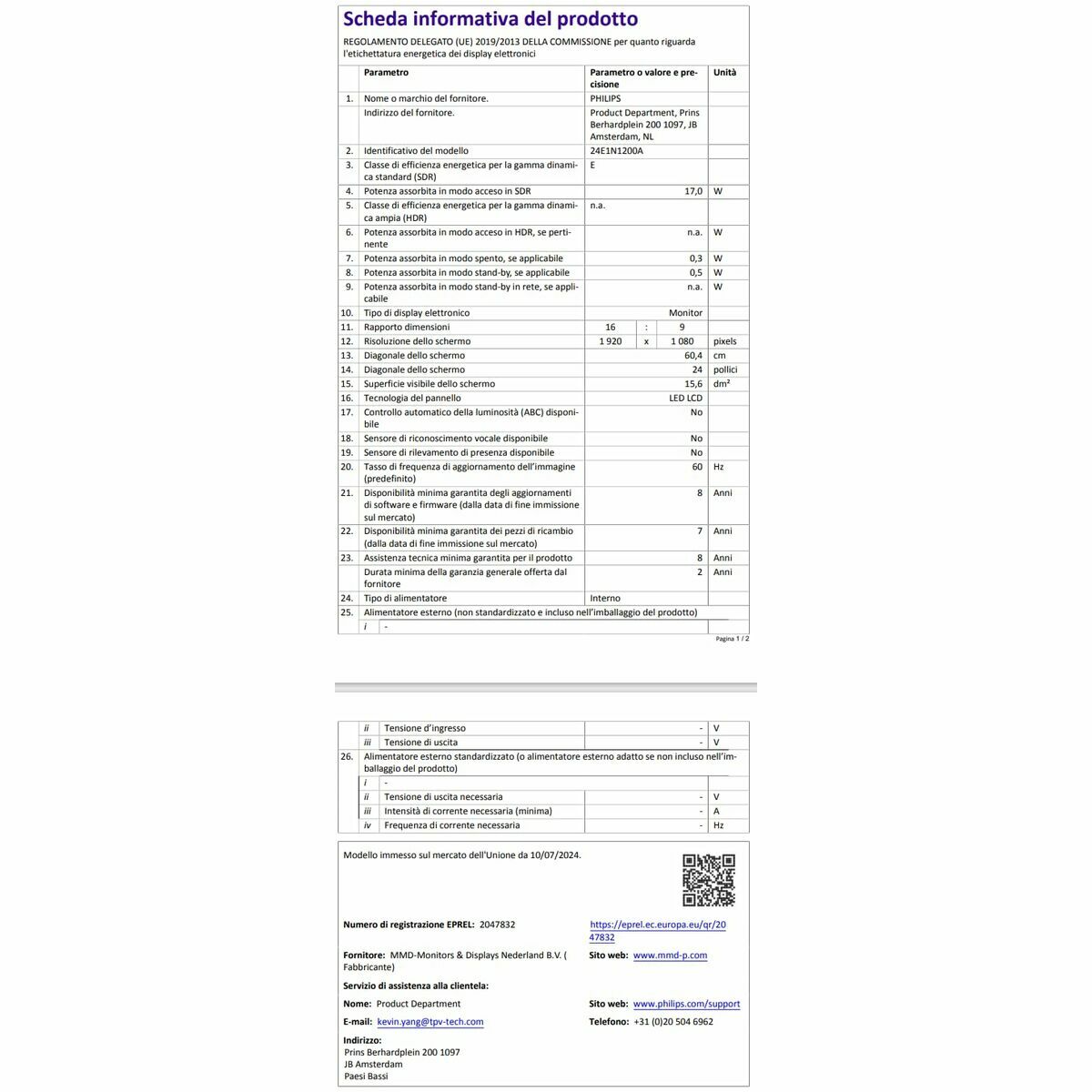 Skærm Philips 24E1N1200A/00 23,8″ Full HD