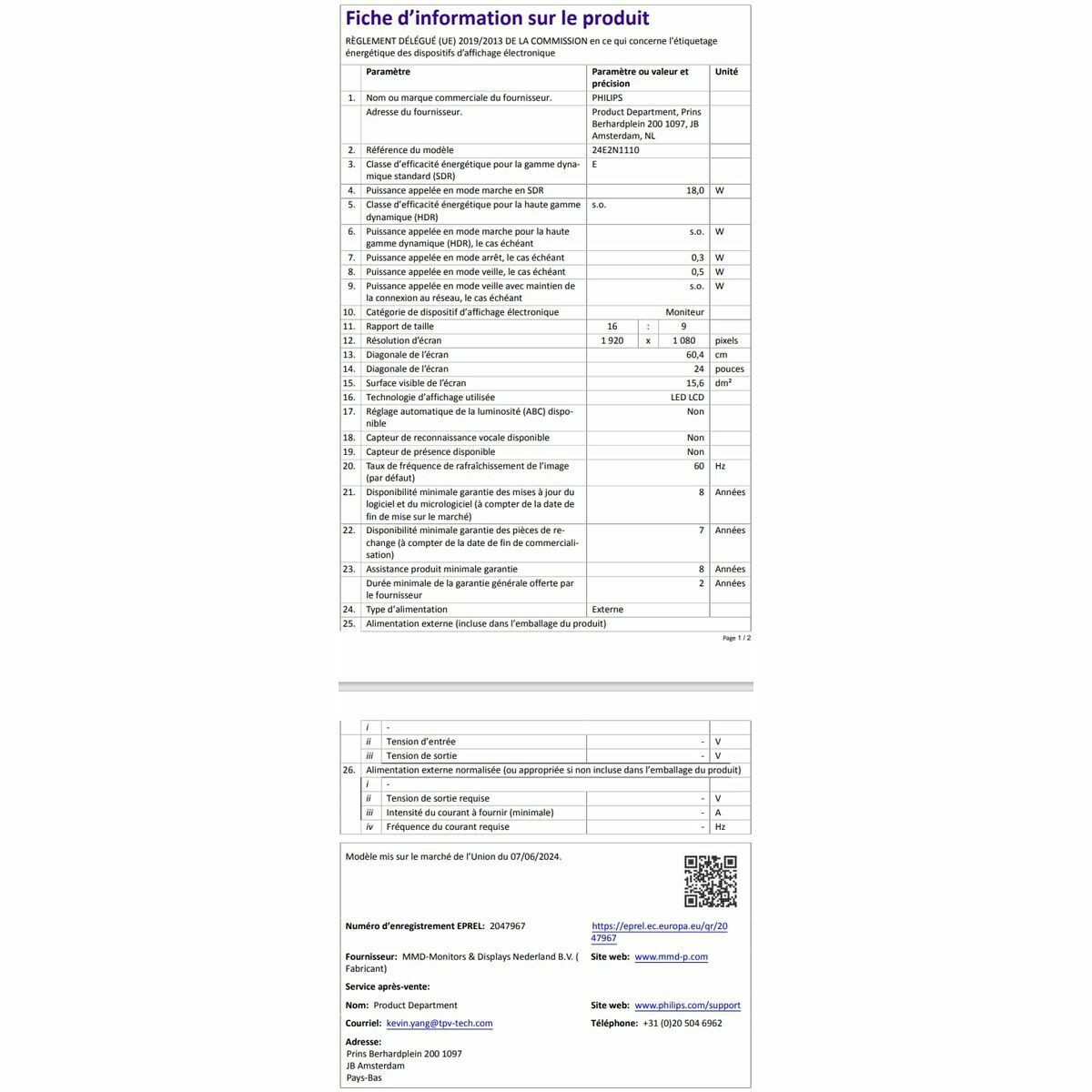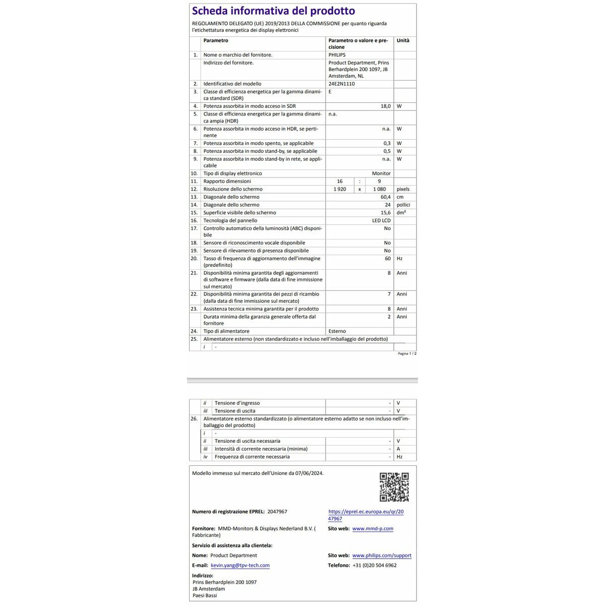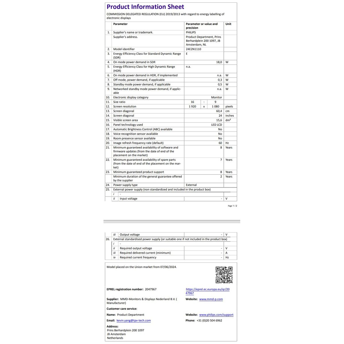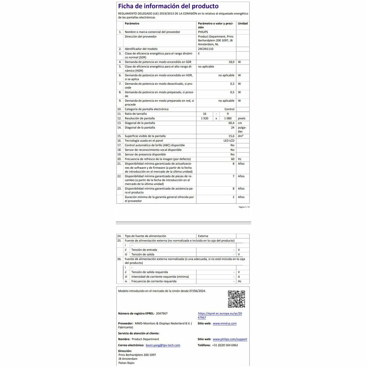 Skærm Philips 24E2N1110/00 24″ Full HD