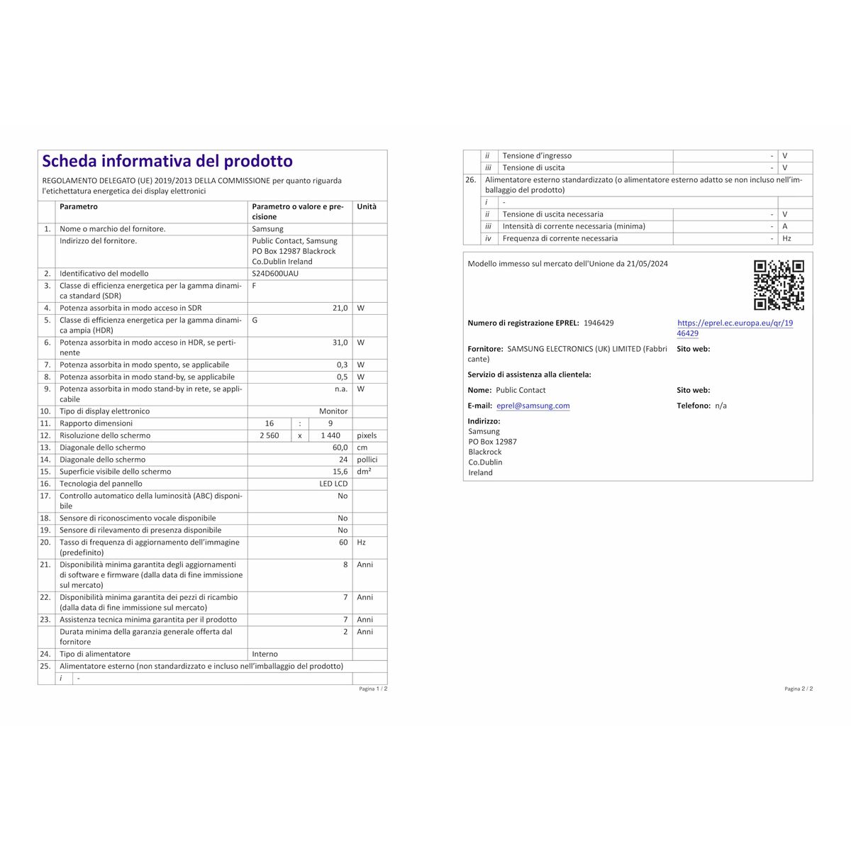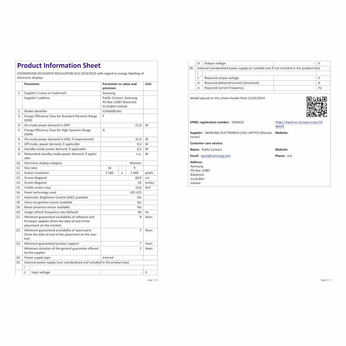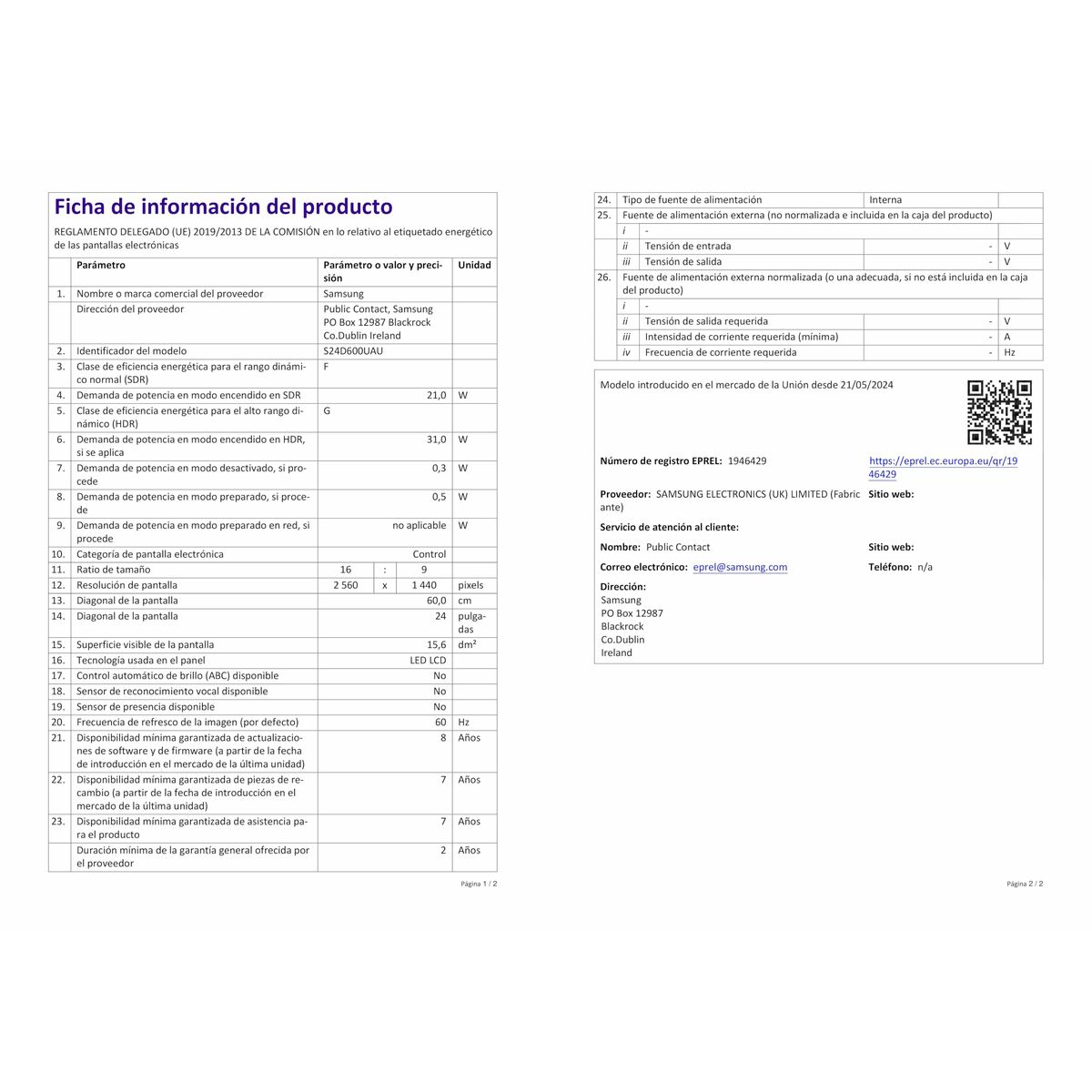 Skærm Samsung LS24D600UAUXEN Quad HD 24″