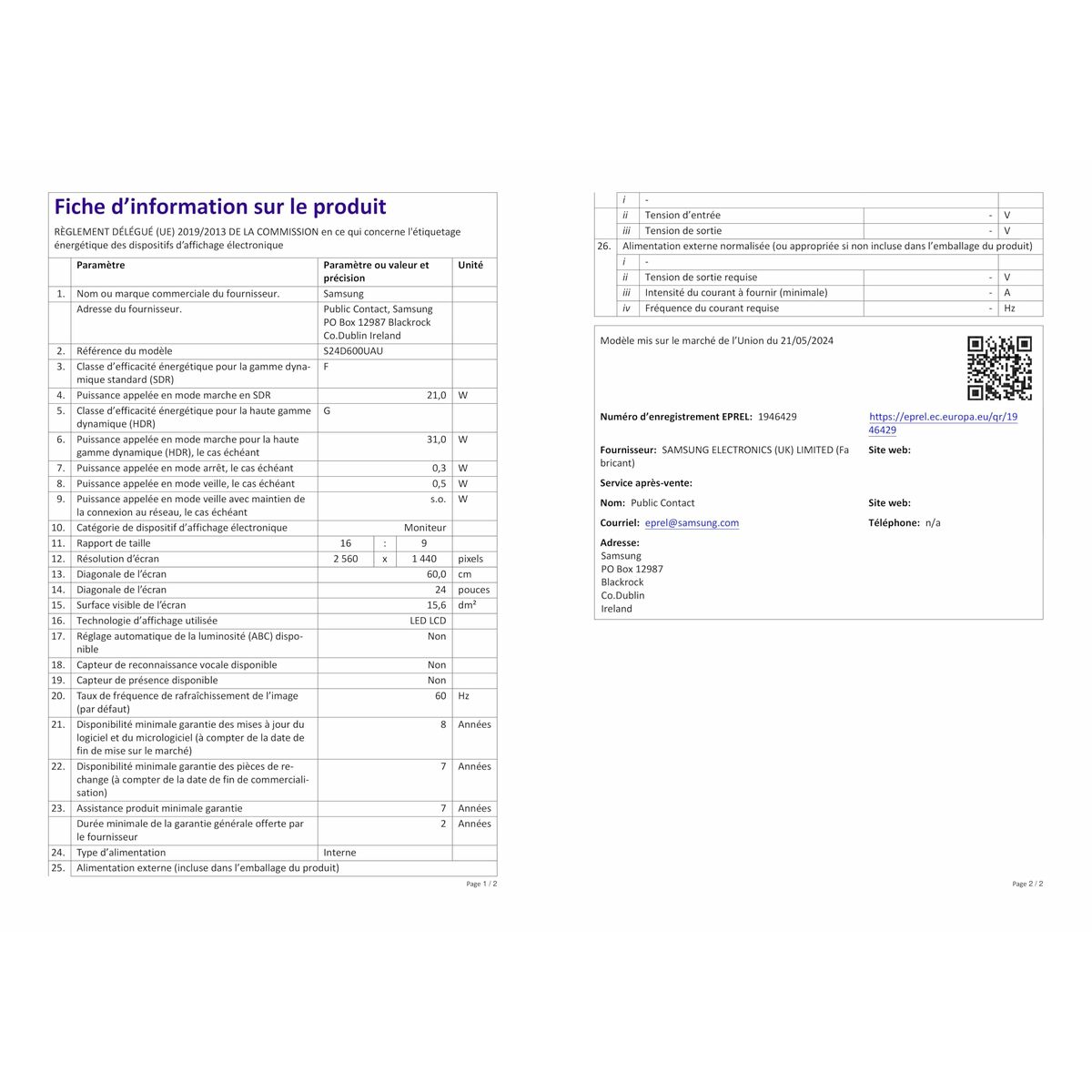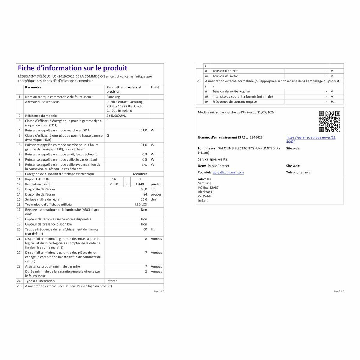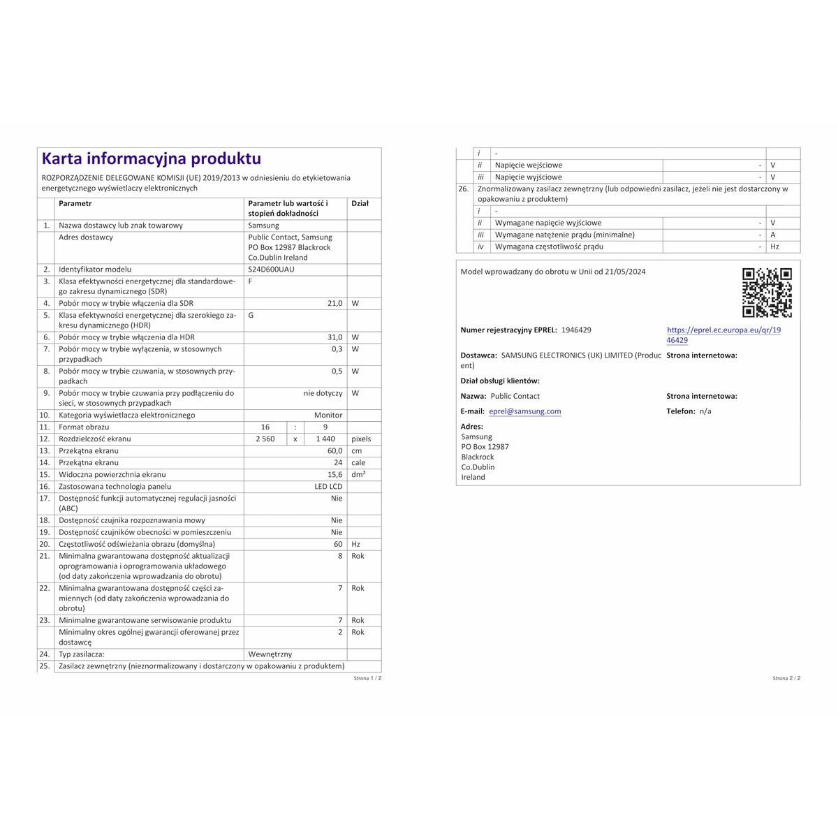 Skærm Samsung LS24D600UAUXEN Quad HD 24″