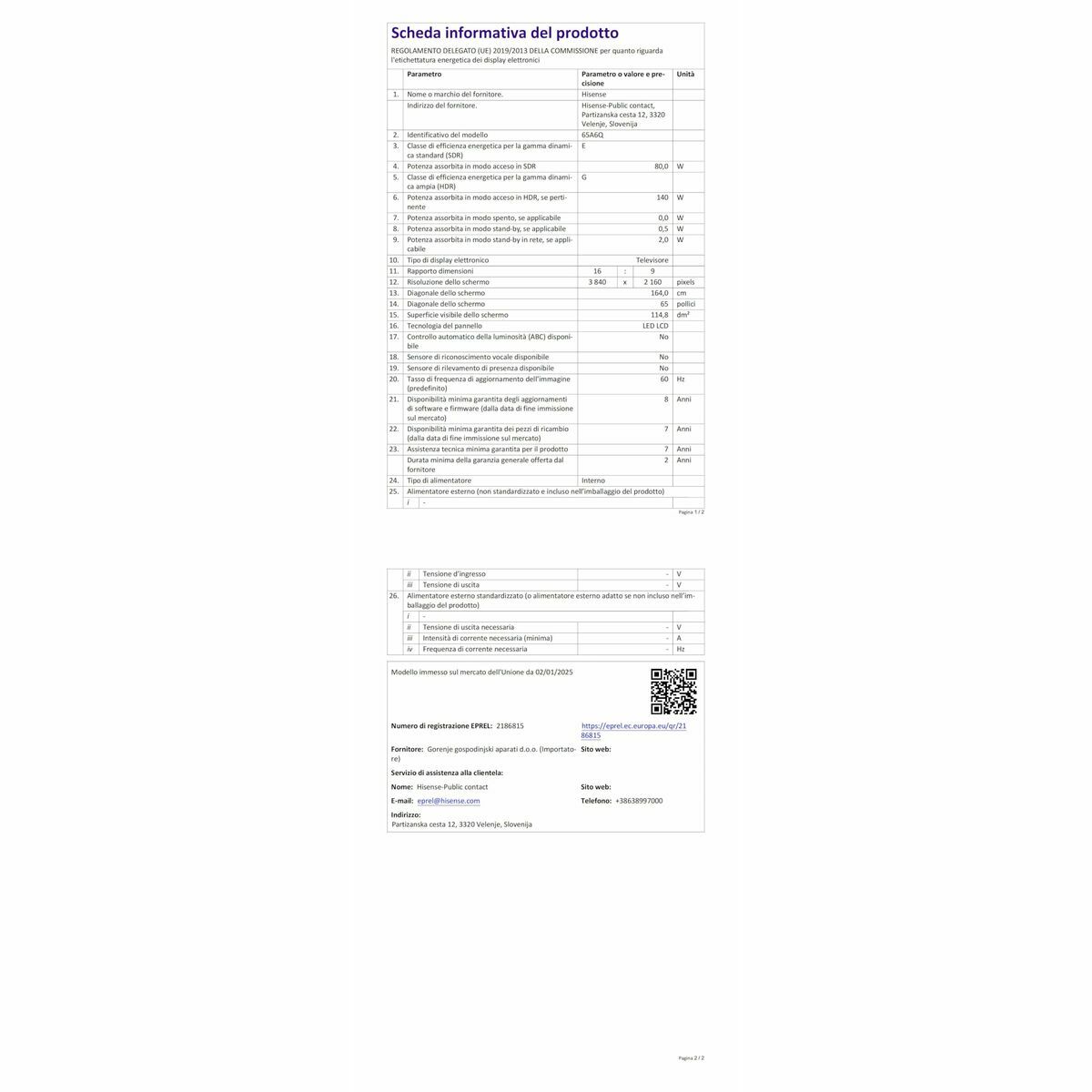 Hvis du søger de mest trendy nyheder på markedet, præsenterer vi dig for Smart TV Hisense 65A6Q 65″ 4K Ultra HD LED HDR D-LED!