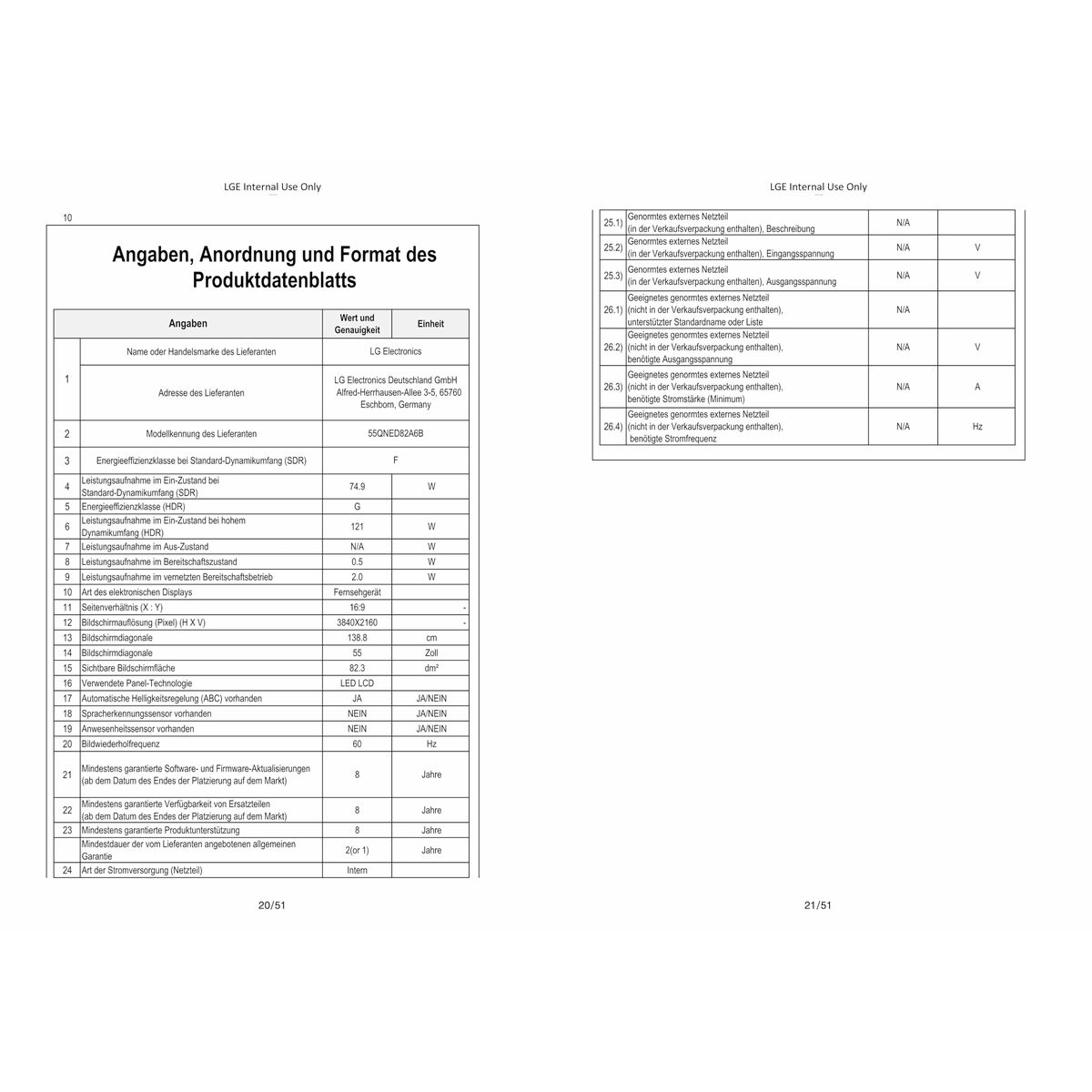 - Skærmens diagonal (cm): 139,7 cm