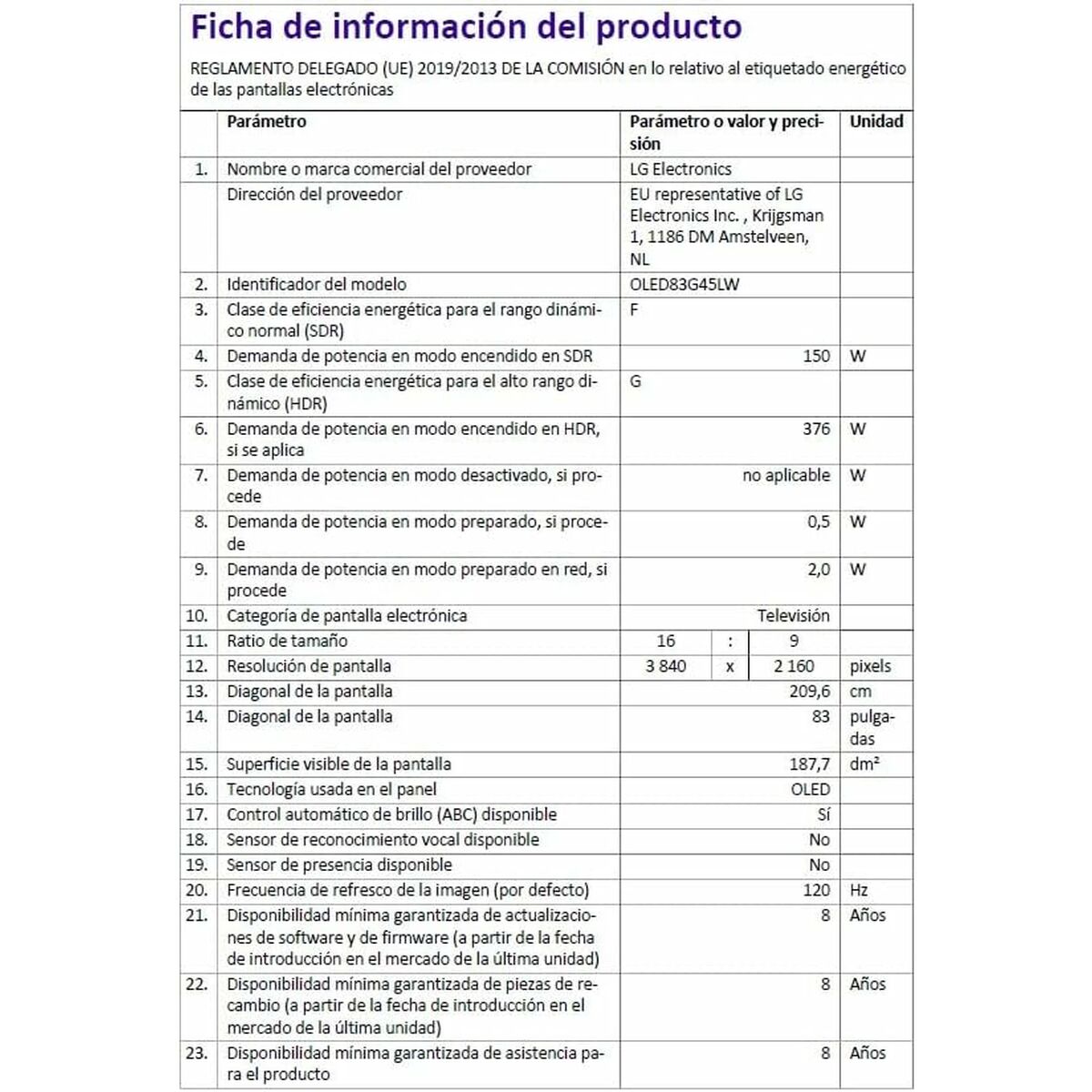 Smart TV LG OLED83G45LW.AEU 4K Ultra HD HDR OLED