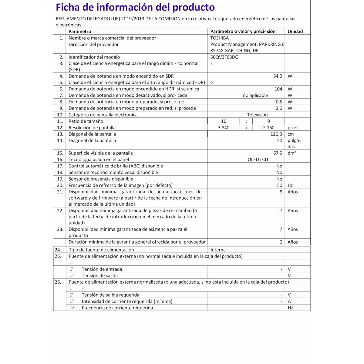 Hvis du er vild med IT og elektronik og kan lide at være opdateret med teknologi uden at gå glip af noget, så køb Smart TV Toshiba 50QV3F63DG 4K Ultra HD 50″ QLED til en uovertruffen pris.