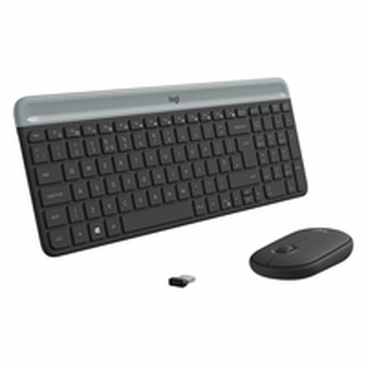 Logitech MK470 Slim Wireless-comboet er et trådløst sæt, der inkluderer et fuldt tastatur (100%) og en ambidextrøs mus, designet til at give en behagelig og lydsvag oplevelse i alle arbejds- eller studieomgivelser. Tastaturet har et spansk QWERTY-layout med lavprofiltaster, der muliggør en flydende skriveoplevelse som på en bærbar, en integreret numerisk tastaturdel og Windows-specifikke taster, alt sammen i en grafitfarvet finish, der giver et moderne og professionelt udseende. Den medfølgende optiske mus er præcis med 1000 dpi og har en tre-knaps konfiguration med scrollhjul, optimeret til at minimere støj under brug og er op til 90 % mere lydsvag end standardmodeller, ideel til koncentrerede miljøer. Begge enheder forbinder trådløst via 2,4 GHz nanomodtager USB Plug and Play, som sikrer en stabil forbindelse med en rækkevidde på op til 10 meter uden interferens eller installationsbesvær. Strømforsyning sker via alkaliske batterier: tastaturet bruger to AAA med en batterilevetid på cirka 36 måneder, mens musen bruger et AA-batteri med en varighed på omkring 18 måneder. Dimensionerne og vægten for tastaturet er kompakte 373,5 x 143,9 x 21,3 mm og 558 gram, mens musen måler 107 x 59 x 26,5 mm og vejer 100 gram, hvilket gør den nem at håndtere og transportere. Sættet er kompatibelt med Windows 7, 8, 10, 11 og Chrome OS og understøtter moderne platforme og Surface-enheder. Pakken inkluderer forudinstallerede batterier og en ekstremt kompakt USB-modtager, som kan blive siddende uden gener. Fraværet af håndledsstøtte og baggrundsbelysning understreger fokus på enkelhed og funktionalitet, hvilket giver et velafbalanceret tastatur og mus til brugere, der søger praktisk, holdbart og effektivt udstyr på begrænset plads. Dets minimalistiske design og Logitechs pålidelighed gør denne model velegnet til kontorer, studerende og professionelle, der værdsætter et lydsvagt og komfortabelt trådløst sæt.