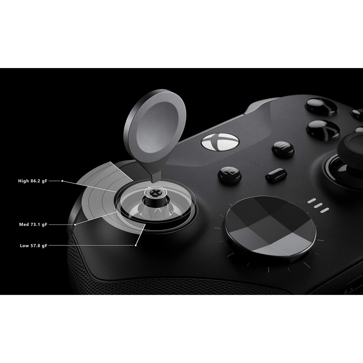 Microsoft Elite. Enhedstype: Gamepad, Understøttede gaming platforme: Android, PC, Xbox One, Xbox One X, Gaming kontrol teknologi: Analog/digital. Forbindelsesteknologi: Kabel & trådløs, USB-stik type: USB Type-C. Farve på produkt: Sort. Strømkilde: Batteri, Batteritype: AA. Vægt: 345 g